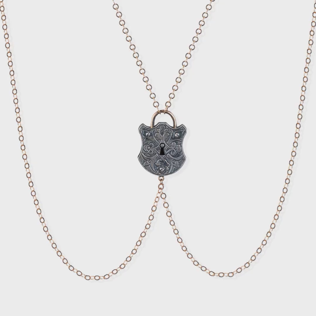 ارتقِ بأسلوبك مع قلادة القفل متعددة الطبقات، وهي إكسسوار أنيق يضيف لمسة من الرقي إلى أي مجموعة ملابس